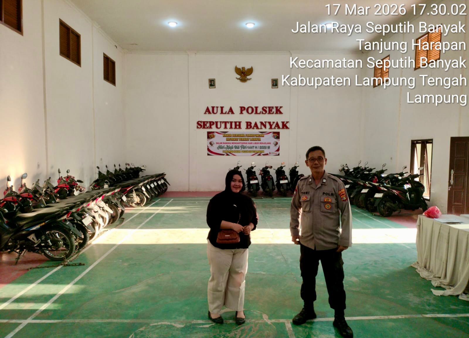 Lampung Tengah — Dalam rangka menyambut Hari Raya Idul Fitri 1447 H, jajaran Polsek Seputih Banyak, Polres Lampung Tengah, Polda Lampung menghadirkan layanan penitipan kendaraan bagi masyarakat yang akan melaksanakan mudik Lebaran.