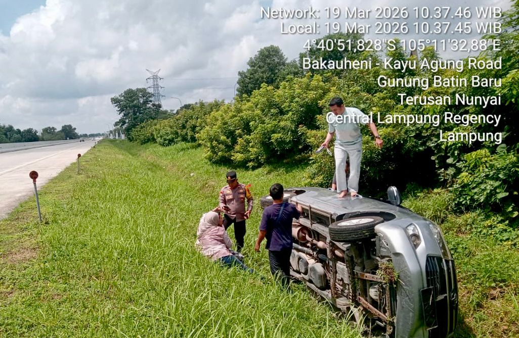 Kendaraan tersebut diketahui membawa satu keluarga yang tengah melakukan perjalanan mudik dari Bekasi menuju Lubuk Linggau, Sumatera Selatan.